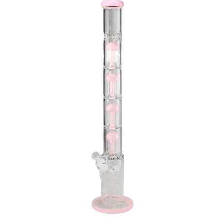 The Skyscraper - the awesome multilevel bong from Black Leaf® made of the best borosilicate glass offers the highest smoking fun! For cooled and filtered smoke provide - in addition to the diffuser slots in the chillum - a whole FOUR tree percolators with eight arms each! In addition, ice cubes can also be filled into the top chamber.