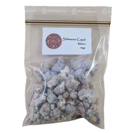 Black Copal is extracted from tropical Balm of Giliad of the Bursera variety. It is said to have healing and cleansing properties. In Mexico it is mostly burned in ceremonies associated with contacting the dead (dia de los muertos). It has an earthy, calming aroma.