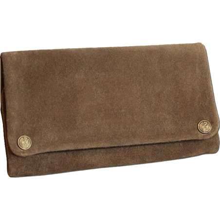 ORIGINAL KAVATZA LEATHER POUCH. Made of brown suede. Is unique and authentic. It has two inside pockets, the back pocket is for the Tobacco and the front pocket is for the filter-tips and lighter. The paper holders are of course also attached. Easy closing with magnetic button! An individually exclusive gift that is, indispensable for every Tobacco Smoker.