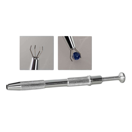 Cet outil de préhension, le grappin à perles, est vraiment utile. Il suffit d'appuyer vers le bas et quatre petits bras de préhension apparaissent, qui saisissent particulièrement bien les perles de terp ou les inserts. Il est ainsi très facile de les faire entrer et sortir du banger. Pratique également pour le nettoyage, si l'on fait tremper les petites pièces ensemble dans une solution de nettoyage, il est facile de les sortir sans que les mains n'entrent en contact avec le produit nettoyant.