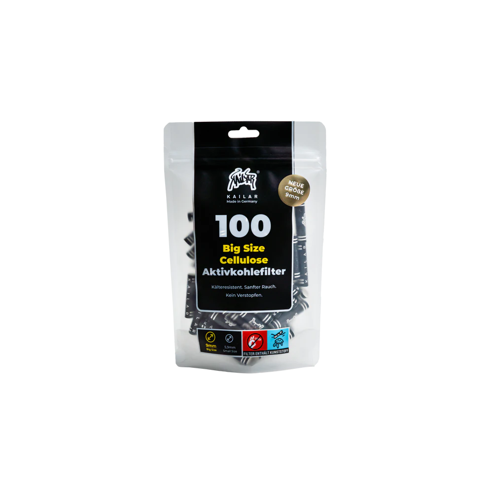 Der erste Cellulose Big Size Aktivkohlefilter ist da! Die 9mm Cellulose-Caps ermöglichen dir ein völlig neues Raucherlebnis mit viel Durchzug.