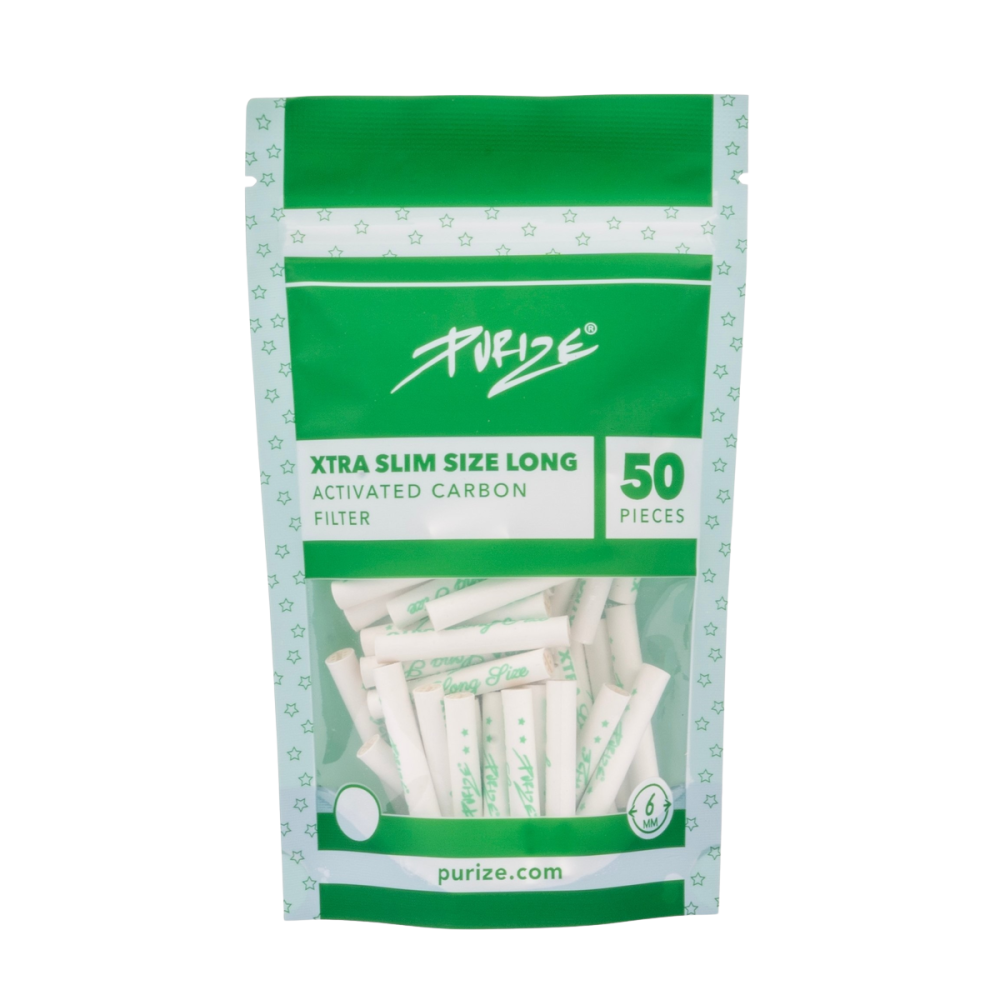 Unser PURIZE® XTRA Long Size Aktivkohlefilter - Der wahrscheinlich längste Aktivkohlefilter der Welt für Selbstgedrehte. Das Besondere an unserem XTRA Long Size Aktivkohlefilter ist, dass er den Rauch durch den verlängerten Rauchweg noch mehr kühlt.