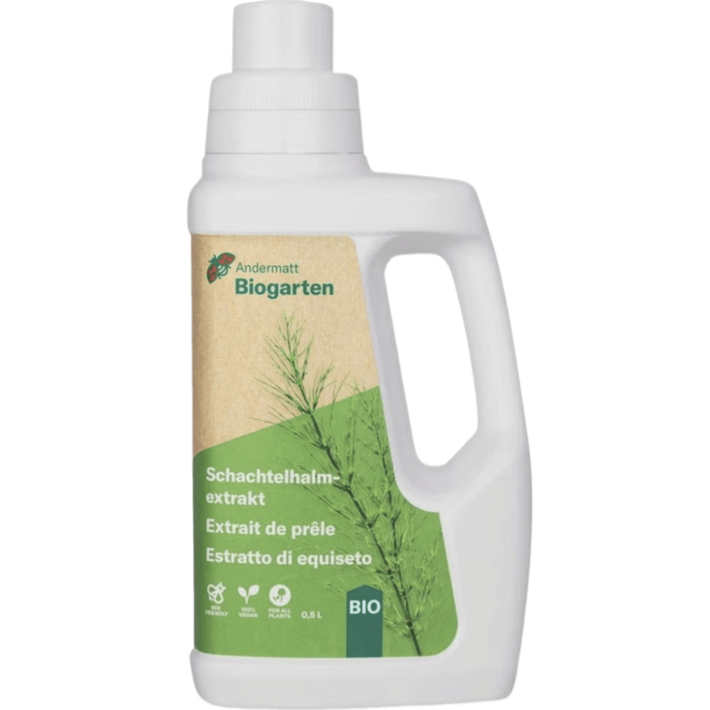 Natürlicher Extrakt aus Schachtelhalm zur einfachen Anwendung in Garten. Der konzentrierte Extrakt kann verdünnt und direkt mit einem Sprühgerät ausgebracht werden. Schachtelhalm enthält viel Kieselsäure. Diese stärkt die Zellwände der Pflanzen und verbessert so deren Robustheit gegenüber Schaderreger.