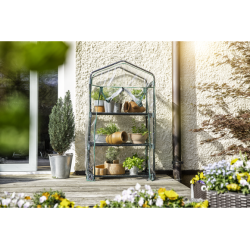 Das Balkongewächshaus bietet optimale Bedingungen für die Anzucht und Aufzucht von Kräutern, Gemüse und Zierpflanzen – selbst auf kleinstem Raum. Die kompakte Konstruktion mit drei stabilen Ablageflächen eignet sich ideal für den Einsatz auf Balkon, Terrasse oder im kleinen Stadtgarten.
