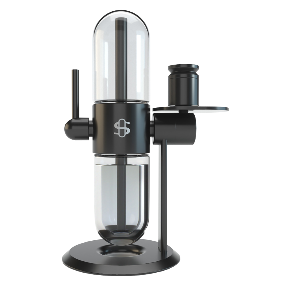 Die Stündenglass Gravity Hookah wird als komplettes Set geliefert, das einen Aluminium-Bowl-Bausatz und einen Glas-Bowl für konventionelles Rauchen enthält. Das Gerät kann auch an jeden Vaporizer mit einem 14 mm Anschluss angeschlossen werden.