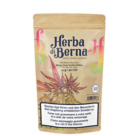 Eine neue beliebte CBD Sorte ist das Mango Haze. Der Strain wurde dieses Jahr ausgezeichnet und kommt aus dem Hause Jim Seeds. Der biologische CBD-Hanf wird an den Hängen des Belpbergs kultiviert und erinnert mit seinem Terpenprofil an Mango und Zitrusfrüchte.