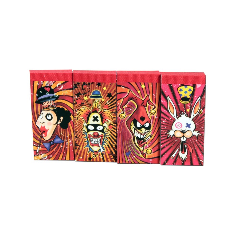 It´s time for a Freak Show! Diese Comic-Kollektion an Filter-Tips wurde von dem Karikaturisten Stefan Theurer entworfen, der auch schon für das bekannte MAD-Magazin oder die Mushroom gezeichnet hat. Ein Paket beinhaltet 4 verschiedene Motive, die alle durchgehend mit dem Covermotiv farbig bedruckt sind.