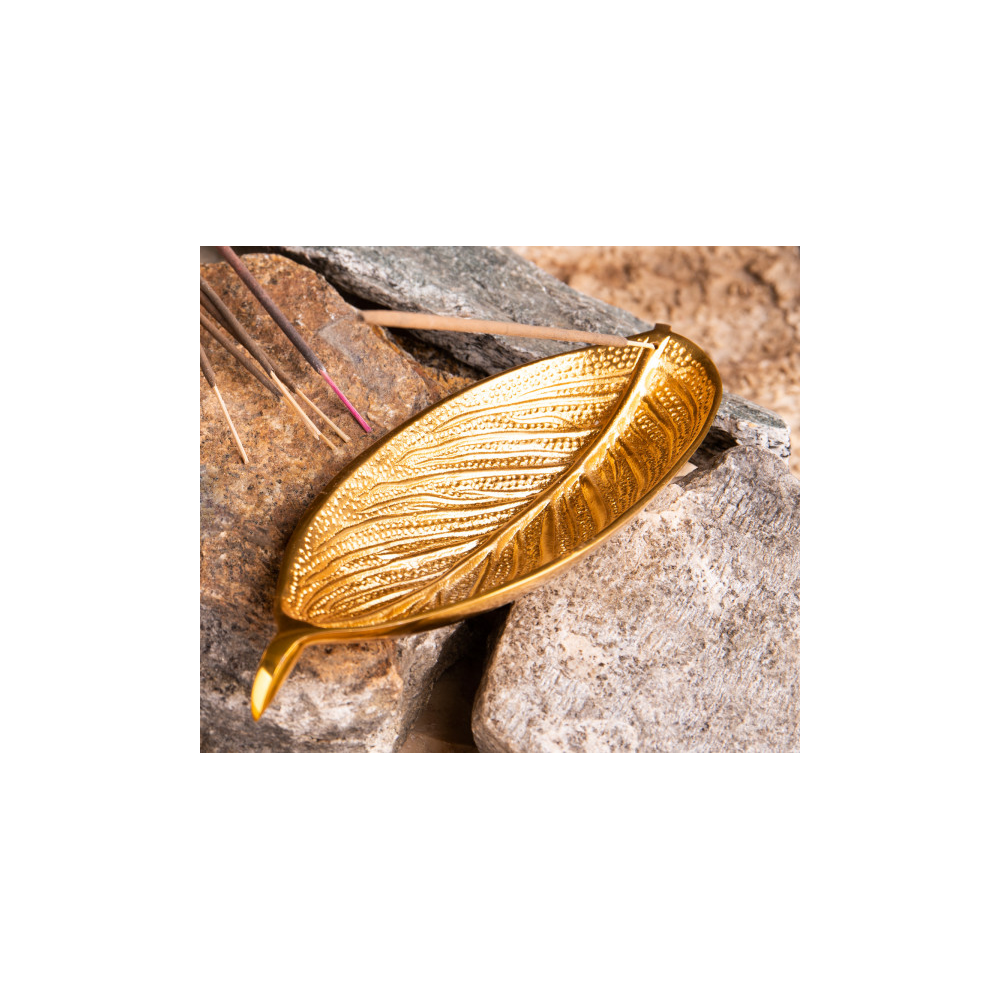 Ein eleganter Räucherstäbchenhalter mit Blattrelief. Ein zauberhafter Blickfang für jedes Ambiente.