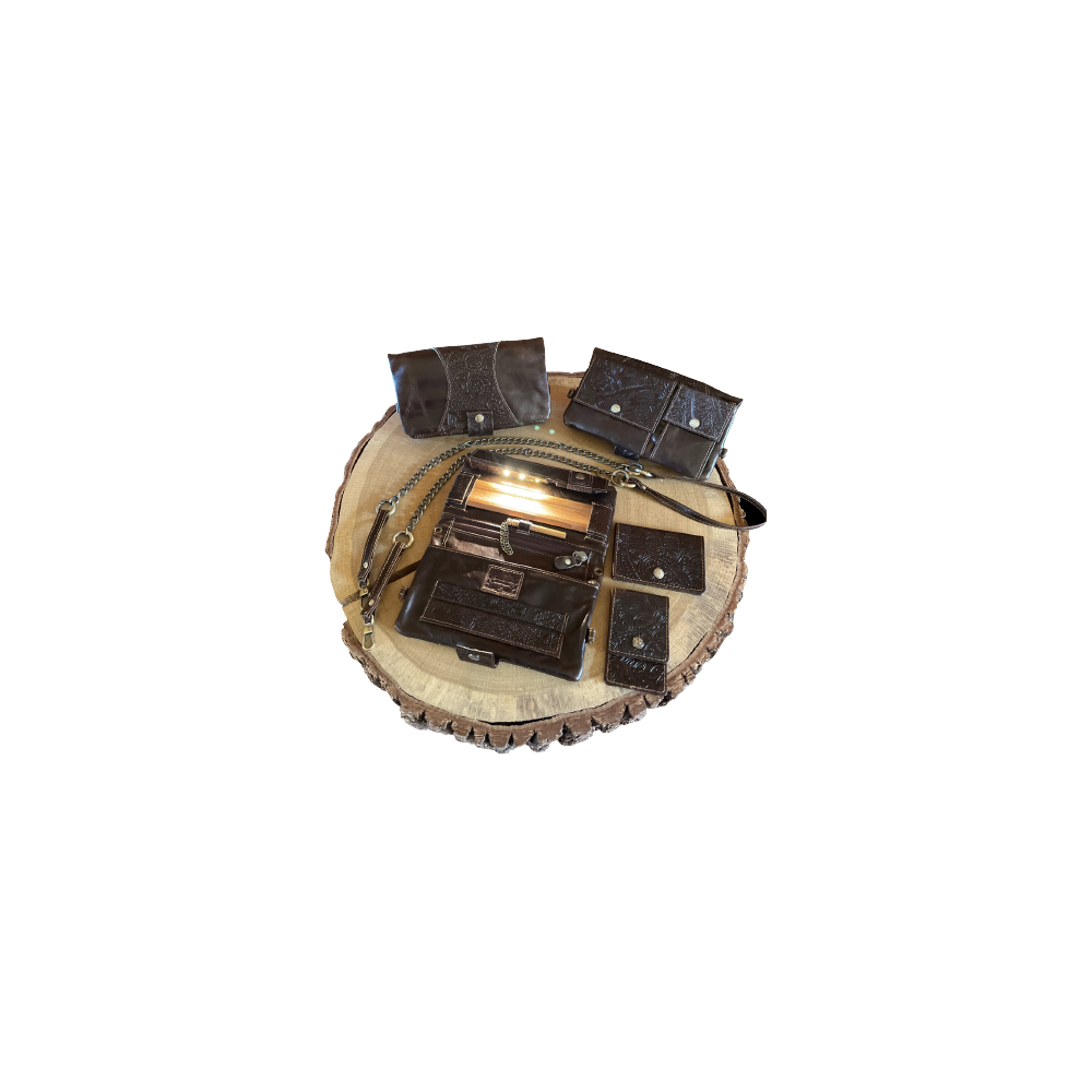 Das Joint Portemonnaie „Ethnic“ in braun aus geprägtem Leder mit Paisley Muster.