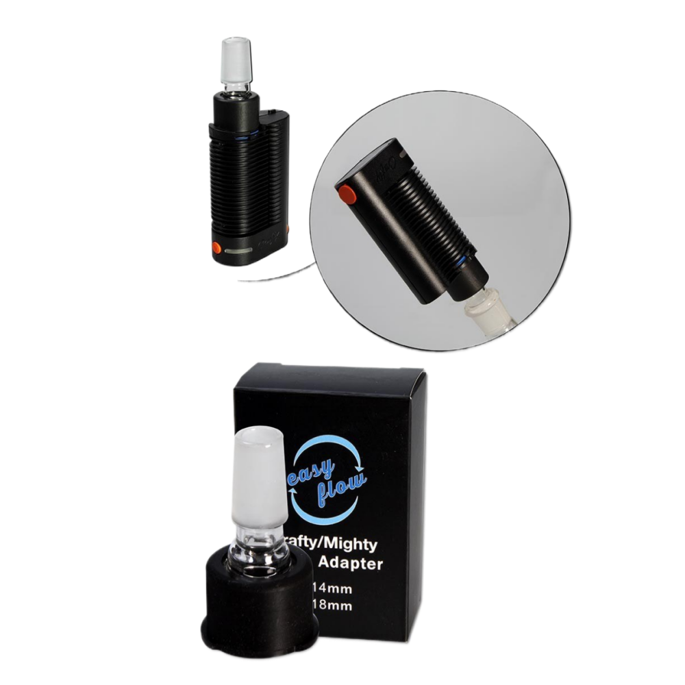 Mit diesem Adapter kann man den ´Crafty´ oder den ´Mighty´ mit einer Bong mit Normschliff NS 19 oder NS 14 (18,8 mm / 14.5 mm) verbinden.