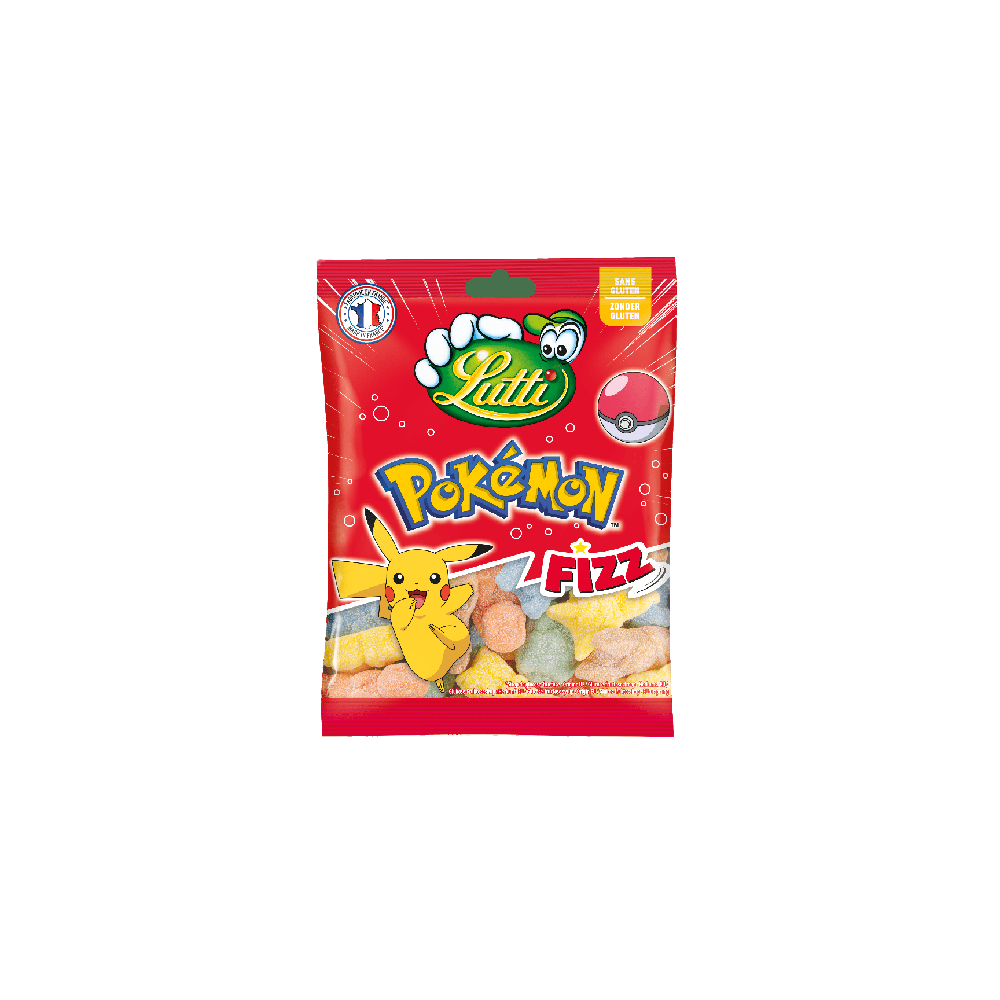Lutti Pokemon Fizz, die 1. Pokemon-Fruchtgummis, die pieksen und nach Früchten schmecken. Hier finden Sie alle Ihre Lieblingspokemon: Pikachu, Salamèche, Evoli, Carapuce und Bulbizarre in dieser 180g Tüte.
