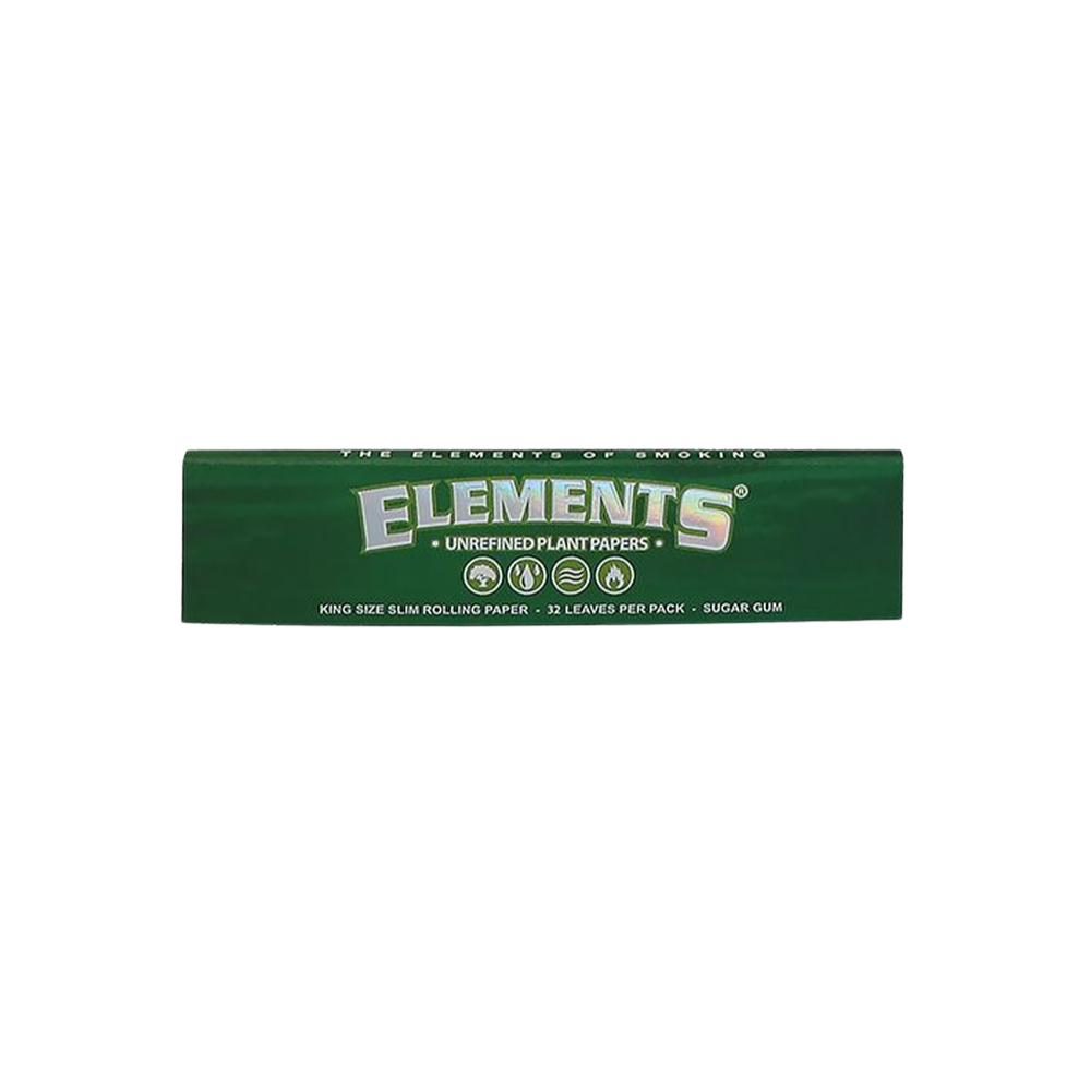 The Green King Size Slim Papers from ELEMENTS are produced using renewable energy and without chemical additives. By using a sugar gum coating, the papers burn evenly with extremely low ash formation and give off a caramelised note. Each cigarette paper is labelled with a watermark (CrissCross).