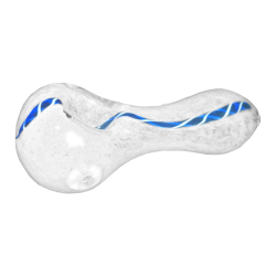 The pipe P010W is a futuristic looking and transparent pipe, which is covered with many white speckles. In the middle, on the upper side of the pipe, a detailed blue ribbon has been inserted, which reaches from the mouth opening to the head of the pipe. Also here the mouthpiece is slightly wider than the neck.