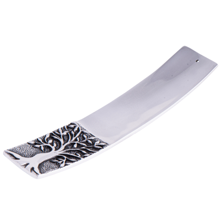 Beautiful modern incense holder with deep symbol relief. Especially wide, so that no ash falls beside it. It is slightly curved so that the ends stand out discreetly from the background.