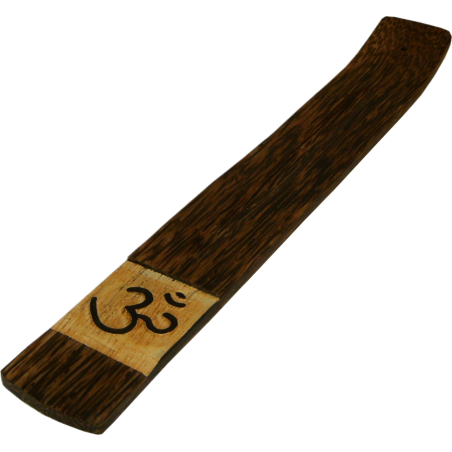 Wooden joss stick holder. With decorative symbol.Length 26.5 cm.