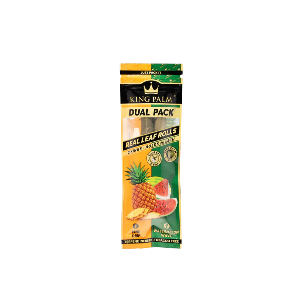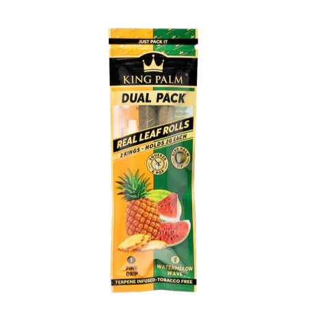 With the King Palm Pineapple & Watermelon Dual Pack, every session becomes a tropical experience. These king size blunt cones are pre-rolled from high-quality Cordia palm leaves – natural, unbleached and free from tobacco or glue.
