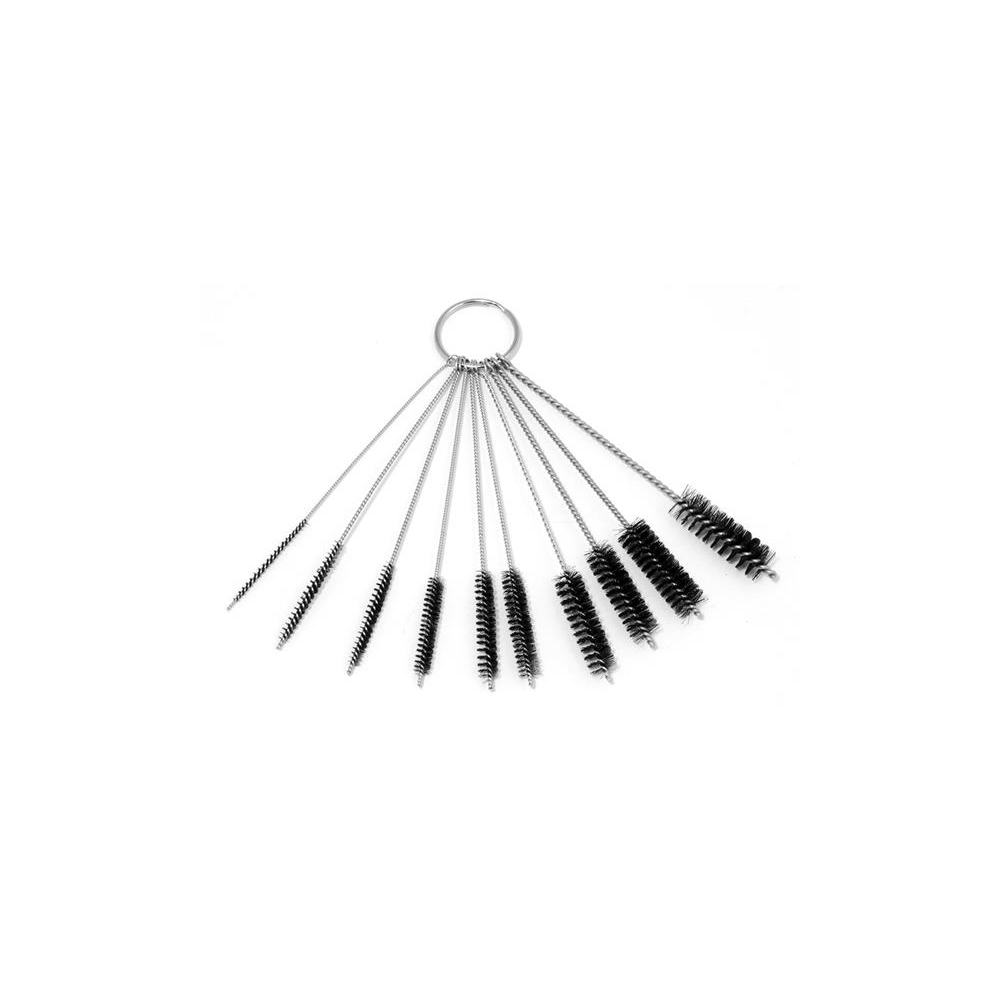 Twist wire galvanized, coiled, 10 mixed mini brushes on key ring.