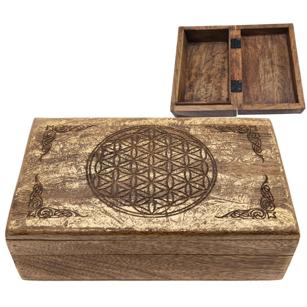 This wooden box with the flower of life is a beautiful and inspiring way to store special items safely and in style.