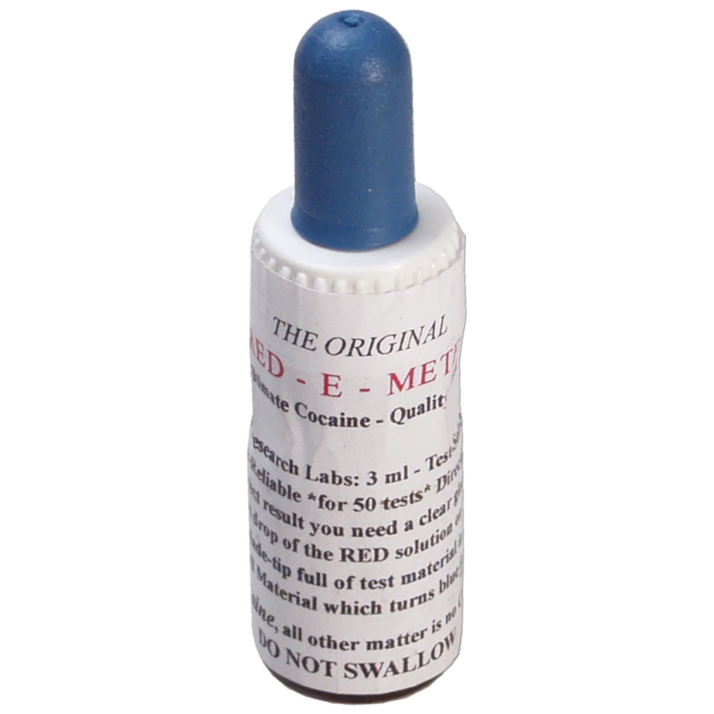 RED-E-METER Cocaine Tester The ultimate Cocaine Quality & Purity Tester Crest Research Labs: 3ml - Test Solution Quick & easy and reliable for up to 50 tests. Direction of use: For a correct result you need a clear glass surface. Place one drop of the RED solution on the glass and put a blade-tip full of test material into the drop. Reaction: All Material which turns blue immediately is cocaine, everything else is not cocaine. Do not swallow!