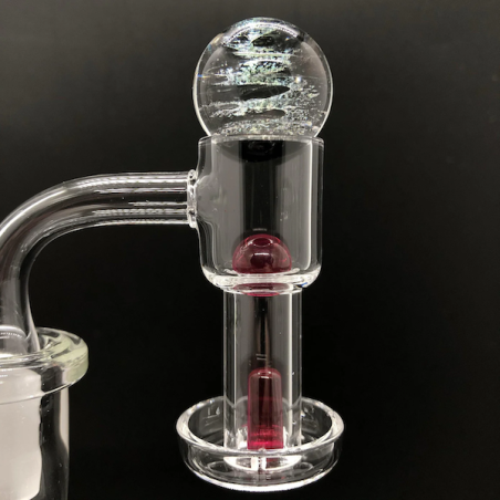 - La partie supérieure ressemble à un banger standard en quartz, dans lequel tu peux insérer un carp cap avant de verser ton extrait sur le banger.