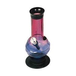 Petit bong acrylique avec cornet et cuvette en métal. Hauteur 18 cm.
