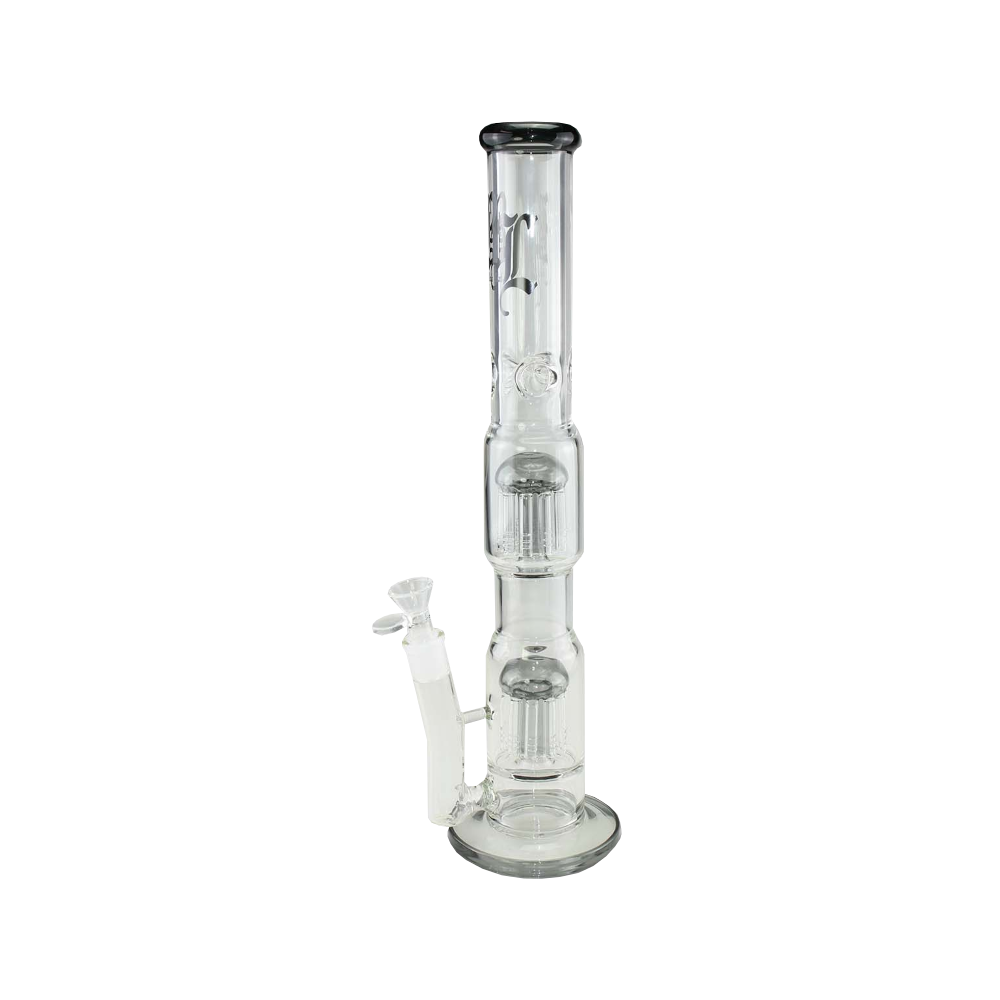 Le refroidissement et le filtrage de la fumée sont très importants pour ce bang en verre cool de Black Leaf®. Pour ce faire, il est équipé de deux colonnes darbres à 10 branches qui font tourbillonner leau et la fumée. Si lon souhaite refroidir encore plus la fumée, il suffit de remplir la chambre à glace de glaçons. Des hits glacés mais efficaces sont garantis.