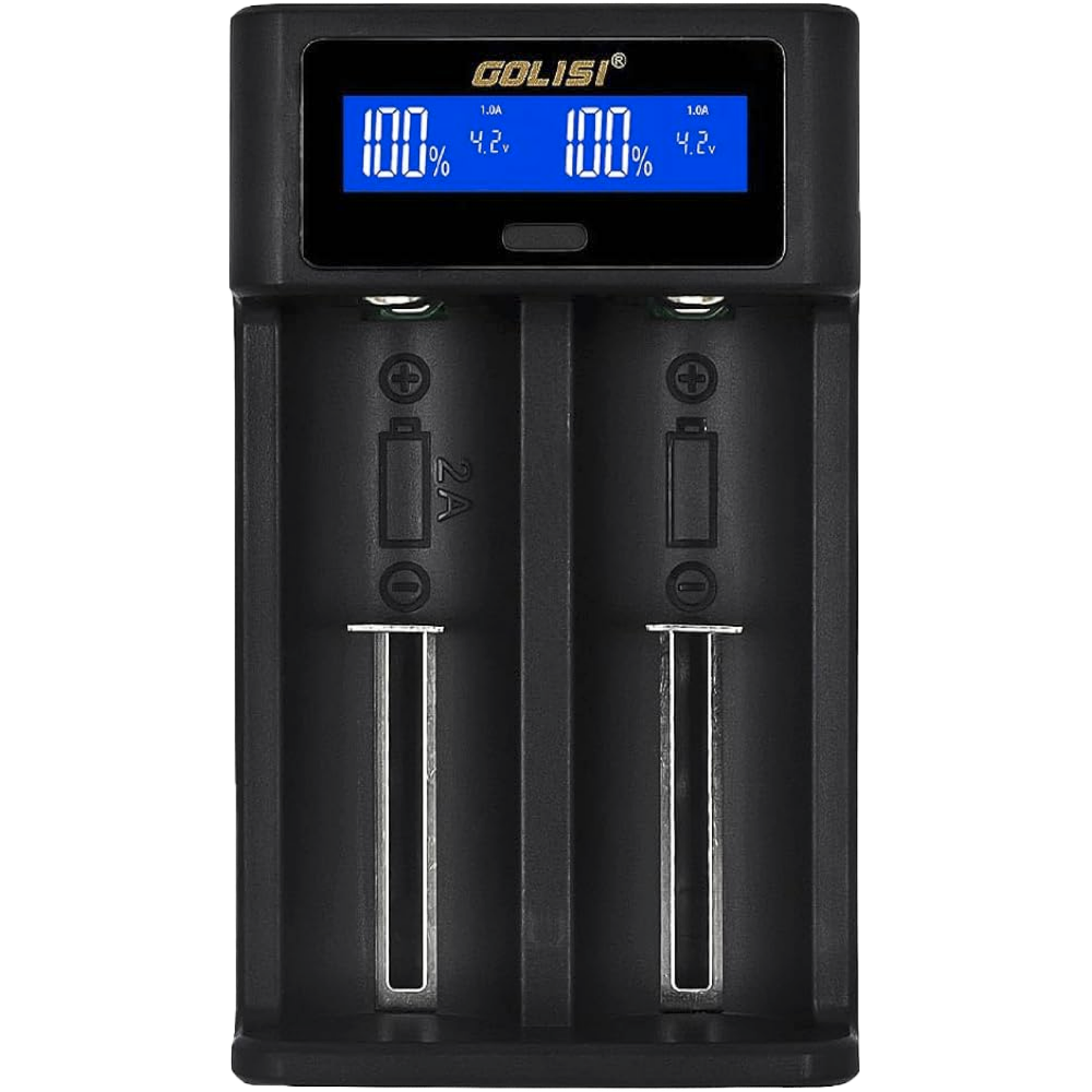 Le nouveau chargeur Golisi i2 est un chargeur compact à deux baies avec une grande compatibilité en termes de taille et de type de batterie. Il est alimenté par un port micro USB, ce qui permet de charger les batteries sans problème lors des déplacements. Toutes les batteries d'une longueur de 32 à 70 mm et d'un diamètre maximal de 32 mm peuvent être chargées. Les cellules AA ou AAA, IMR, ICR, Ni-MH et Ni Cd sont également compatibles. Les 2 baies du Golisi i2 peuvent également être utilisées simultanément avec différents types d'accumulateurs. Les ressorts de traction intégrés (norme militaire pour une utilisation > 100.000 charges !)) sont très stables et assurent un contact optimal pour la charge.