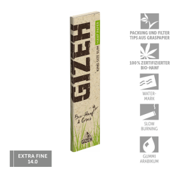GIZEH Chanvre & Herbe King Size Slim sont des feuilles non blanchies et non colorées, fabriquées à partir de chanvre 100% certifié biologique. La texture extra-fine des feuilles garantit un moment de plaisir authentique, qui est soutenu et prolongé par une combustion plus lente. Les feuilles sont livrées dans la qualité habituelle de GIZEH, avec 34 feuilles et un mécanisme de fermeture durable sans aimants.