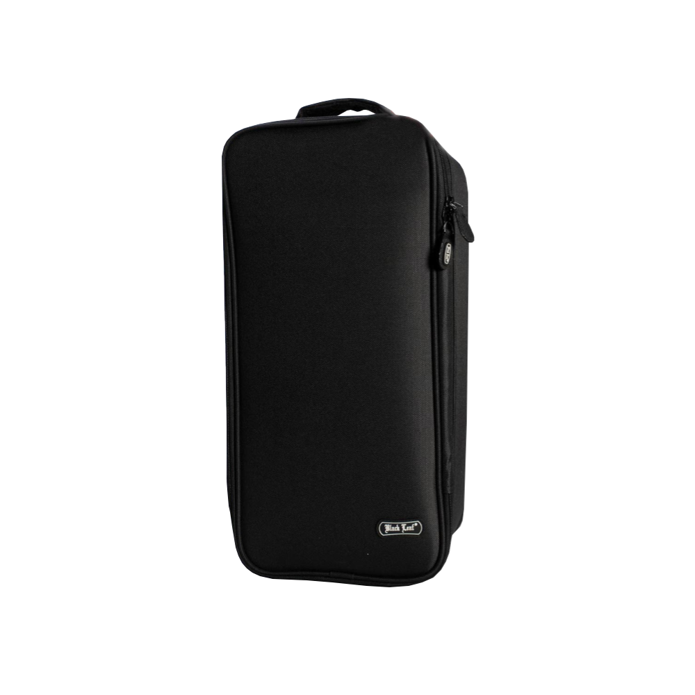 Boîtier de bang super souple. Cette mallette avec fermeture éclair, 2 poignées de transport et une sangle extensible est en plastique à lextérieur et possède 2 coussinets en peluche velours stables et flexibles à lintérieur, entre lesquels vous pouvez mettre toutes les parties du bang. Une pochette séparée à fermeture éclair pour les petites pièces peut être fixée à lintérieur de létui à laide de bandes Velcro. À lintérieur du couvercle de la caisse se trouve un support en caoutchouc pour plusieurs pièces individuelles.
