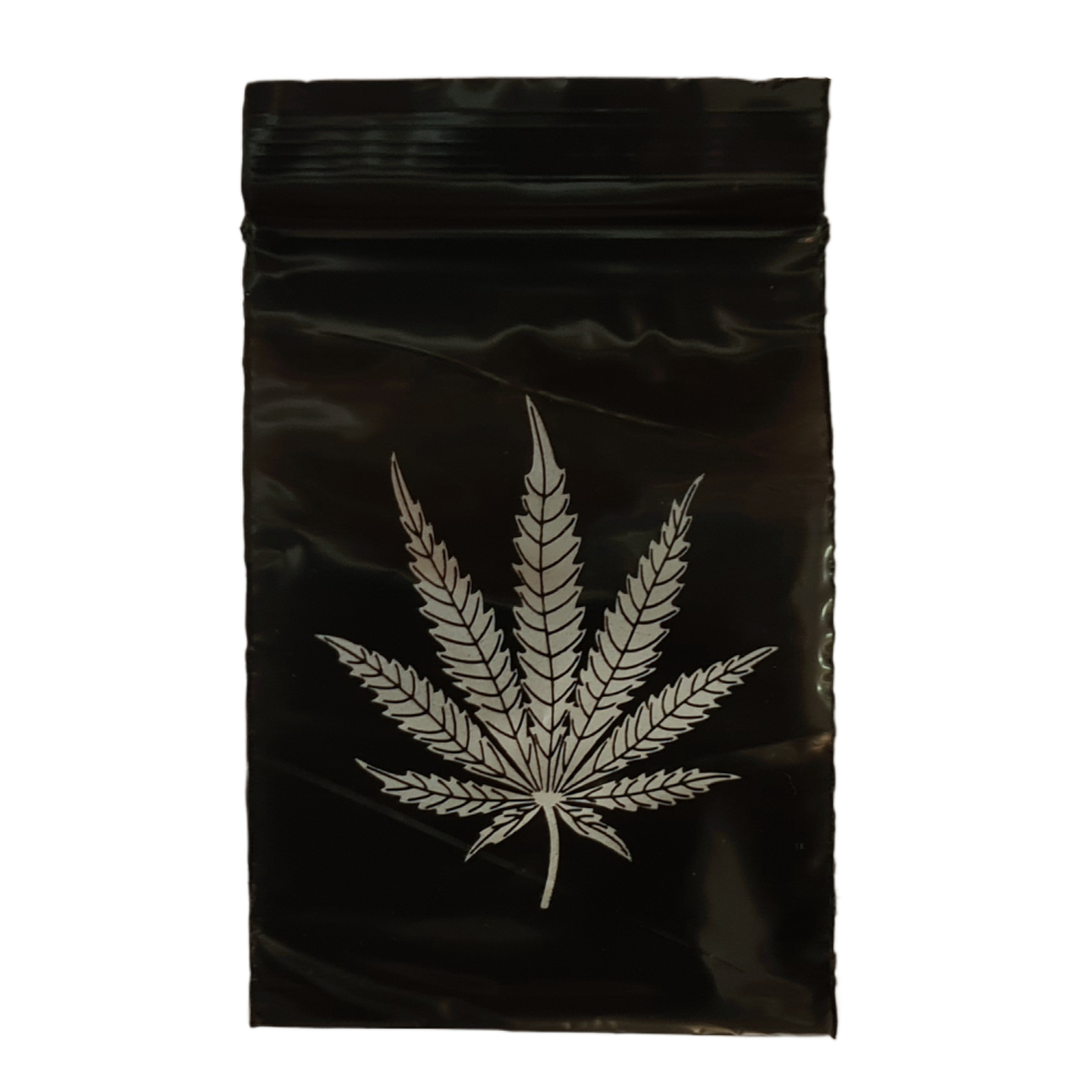 Minigrip Noir avec Feuille de Chanvre 60x80mm, 100pcs