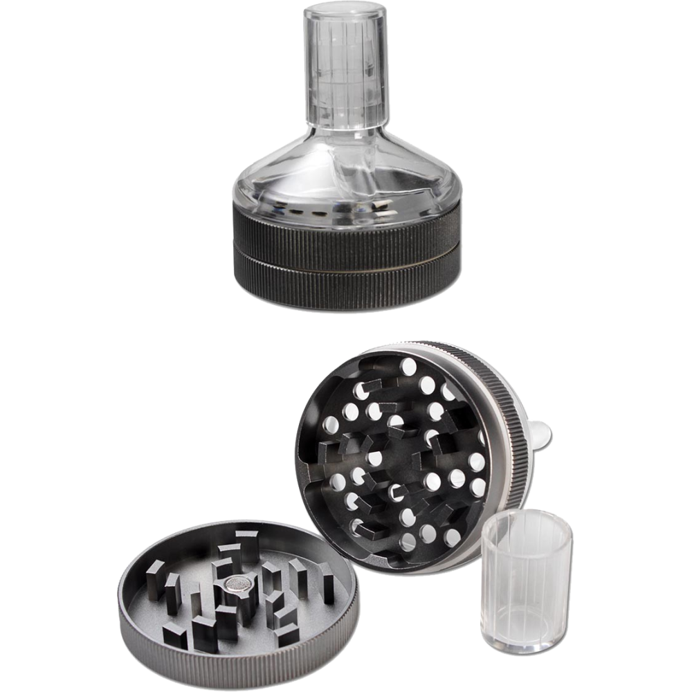 Les lames trapézoïdales fortes et pointues du broyeur Seed de Anaxy sont disposées de telle manière que plus d´herbes s´adaptent et sont, en même temps, plus efficacement déchiquetées. L´entonnoir avec le soi-disant «tuyau» rend le remplissage de blunts, joints, bongs et braconniers particulièrement facile. Dans le même temps, l´entonnoir sert également de collecteur de pollen, car il reste adhérent à la surface de l´entonnoir. Le pollen peut être brossé facilement.