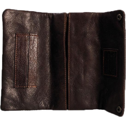 The ´Kavatza´ ´WildThing´ Tobacco Pouch brown made of embossed leather with rivets has a paper holder for standard size cigarette paper and three inner pockets for tobacco, filters and lighter. The high quality leather keeps tobacco moist. Two buttons hold the flap closed.