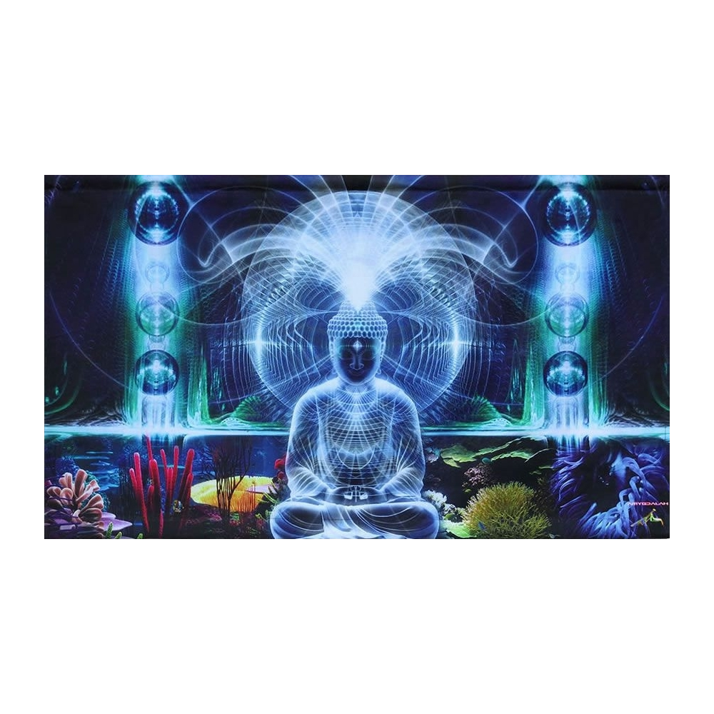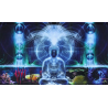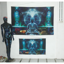 Imprimé non pas avec des encres UV, mais sur une toile active aux UV, doù un certain effet UV.
